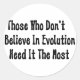 Ever notice those who bellow against Evolution are the same ones who have calluses on their knuckles from dragging them on the ground? "Those who don't believe in evolution need it the most."