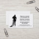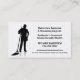 A stylishly simple business card for any house cleaning or business janitor professional. Easy to read black text on a clean white background with a silhouette style graphic image of a person holding a wet damp mop in one hand and a cleaning cloth in the other with a faint shadow effect on gleaming waxed floor. Several text template areas for your contact and business information.