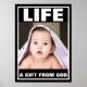 This is a beautiful Pro-life image of baby girl with a blanket on top of her head and the words LIFE and GIFT FROM GOD. A black and white border surrounds the image. All text and fonts can be modified.