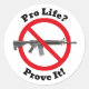 No To Assault Weapons! Enough mass shootings! Spread the message we need gun control NOW with this sticker! The text "Pro Life? Prove It!" is customisable.