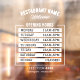 A simple custom business opening hours vinyl window cling decal sign template in a modern minimalist style on a black background. This versatile template allows you to easily design a custom opening times list for your store, salon, restaurant, cafe or any other business. Need help? Feel free to contact me using the message button. I am happy to help with your personalisation, additional items or custom orders.
