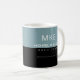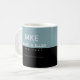 A half black and half-dusty-blue mug personalised with your own name, initials and editable profession (architect)... a modern look in a sans serif font monogram. You can edit the colours using the 'customise it' button... and for example change the blue to white, generating an even more modern design in black and white