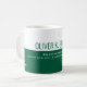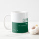 Modern hunter-green (editable colour) and white coffee-mug personalised with your own name and custom profession (physiotherapist).