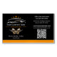 Professional Automotive Repair, Auto Mechanic Business Card. Featuring a sleek car design. Orange and Black. Personalise and add your business details. Add your QR code to your website.