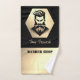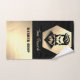 This professional barber towel offers a professional, elegant, and trendy presentation of your business with this Black and gold logo featuring a bearded man with wavy hair, followed by your company/personal name.