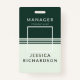 Project confidence and clarity with this Customisable Profeessional ID Badge. Designed for corporate professionals, managers, and team leaders, this badge combines modern style with functionality to ensure seamless identification in any workplace setting. Features: (1) Front: Prominent display of the job title, employee name, and a professional photo for clear identification. (2) Back: Includes contact details for easy returns and a functional barcode for scanning access or security systems. (3) Sophisticated green and celedon colour scheme with elegant stripes for a polished, modern appearance. (4) Durable, lightweight design suitable for daily use with lanyards or badge clips.