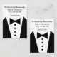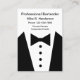 Tuxedo graphic business cards for a professional Bartender, Personal Concierge, or Personal Assistant business card template designed as a two side design with image of a tuxedo and bow tie graphic and simple layout you can customise online. Presented on large format business cards that in vertical are wider than standard size business cards for more visual impact.