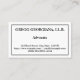 This basic, professional, and restrained business card design features a double-line black border. It could be used by a professional such as an advocate, lawyer, solicitor or corporate counsel. The name, profession and contact details can be personalised.