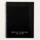 Professional planner features custom name and text in white classic serif font style on black background.