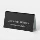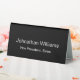 This black tabletop sign has white display text that you can edit. There are two lines of text on each side. The top line is for the recipient's name. The bottom line is for their professional title or a custom message such as an organisation name.