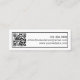 This black and white mini business card has a display image on the front that you can replace with your business logo. Two lines of display text for your name and job title are also on the front. The back has a QR code image. You must enter your URL for your QR code to work properly. The back also has three lines of display text for your phone number, email address and website.