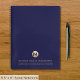 Stay organised during meetings and presentations with our Professional Blue and Gold Business Monogram Notebook. Perfect for businesses, financial services firms, and wealth management professionals, this notebook features a solid navy blue background with a brushed gold monogram initial emblem. Personalise it with your company's name, address, and contact information in classic typography. Make a lasting impression in every note.