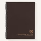 Modern notebook features a minimal design in a simple brown colour palette with complimentary neutral accents. Custom name presented in the lower right hand corner in stylish simple font with a complimentary minimal monogram medallion.