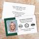 Make a professional impression with this contemporary business card design. Easily personalise it with your photo, name, job title, address, and contact details. Space is provided for your logo and two accreditation logos. All the text and images can be customised or deleted to suit your business needs. Printed colours: dark green, black and white.