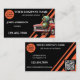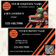 Business card featuring an eye-catching design in black and orange with a car and robot. The car and robot are separate files and can be deleted if you do not need them. A logo template as well as an easy to customise QR code template are added. Great for a professional car mechanic.