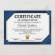 This elegant Certificate of Appreciation features a professional blue and gold design, perfect for recognizing employees, teachers, students, or team members. Ideal for corporate awards, years of service recognition, school achievements, and formal appreciation ceremonies. Fully customizable with name, organization, date, and signature. A timeless and professional certificate suitable for business, education, and organizational use.
