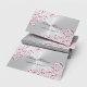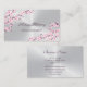 This professional business card features pink cherry blossom branches on a faux silver foil background and an elegant classy script. Fitting for makeup artists, spa, landscaping, wedding planners, event planners, cosmetologists, beauty salon...