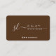 give you cliets a professional and long lasting impression with this business card design features white signature monogram typography initials, prefix, name suffix, and profession in front against brown background and signature full name, career and details in back.