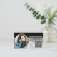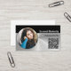 This business card front design features a photo placeholder with template name, occupation and QR code. The back includes a template field for the business name and details. Replace the placeholder photo with your photograph. The QR code link can send customers to your web page, photographs of your work, referrals or other page. Fill in the personalise fields, remove any text or edit using the design tool to select a font style, size, and colour you like. Choose from twelve paper styles. The placeholder photo is courtesy pexels.com.