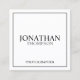 Professional Classic Black and White Square Business Card featuring your information in black and grey serif font style with black square border.