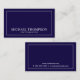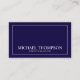 Professional Classic Navy Blue and White Business Card featuring your information in white and grey classic serif font style with white rectangle border.