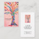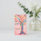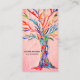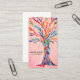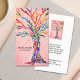 This unique business card is decorated with a print of a mosaic tree made of tiny pieces of brightly coloured glass on a soft coral background.