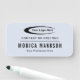 This badge looks professional and it's in keeping with my branding. The magnetic attachment is strong and stays in place all day. The quality of the materials and the colors were exactly as pictured. I couldn't be happier! The printing is clear and easy to read