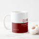 A half dark red (editable color) and white coffee mug, personalized with your name and profession (business administration)