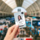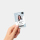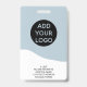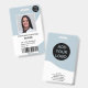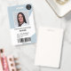 A modern, and professional editable blue nurse photo id badge with logo and barcode.