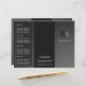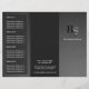 A brochure with a light texture grey black background. Initials of the business name to form a simple logo like design. This professional, elegant, modern and simple flyer brochure design is ideal for accountants, realtors, attorneys, real estate agents and businesses in consultancy and advisory services.