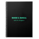 Minimalist Clean Black Soli Colour Background and Neon Teal modern font Business Notebook. Personalise for your custom use. Click on the "Customise It" button to change the background colour, font styles and font colour.
