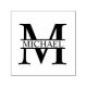 Professional Elegant design featuring monogram with box of name in the middle of monogram.