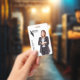 Modern, elegant and professional business id badge. Design features a cutout photo placeholder to display your own cutout business photo, your company logo, name and title on the front. Personalise further with your company details, qr code on the back. In order for the design to look like the sample template, upload your personal business photo with a transparent or white background in PNG format. Font, text size, colours can be customised.