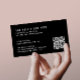 Minimal and elegant black professional business card for your employees featuring your company or firm name, your employee's name and title, and contact information (such as email, telephone numbers, and street address) in clean, simple and modern white typography. Input a URL address to create a scannable QR code linked to your website, or social media profiles. On the back, customise additional text or leave blank.
