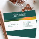 Simple dark green business card with a pop of yellow. Easily upload your logo on the front and back. Easily colour change the solid elements and green text for teal, forest green, sage green, olive green or yellow company colours.