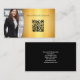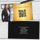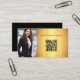 A gold with centre flare sets off the background of this business card design that features your custom photo and QR code on the front with business details on the back. Fill in the template fields or click customise to select a font style, size, and colour you like. Be sure to add YOUR QR code and a vertical photo. Use the QR code link to send customers to reviews, photos, your website or another important link.