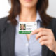 Corporate photo ID badge in a horizontal layout. This simple yet professional design features "Employee ID Card" in white over a green border on the bottom and may be changed to your business name, title or any other text you wish. The template is personalised with your logo, company name, tagline, employee name, title, department / location and employee ID. The backside has your contact information and instructions for returning if found. This classic design works great for any type of business.