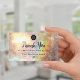 Chic and sophisticated, this is a pastel tan, beige and stone coloured grunge abstract with a hint of sun and rainbows. There's a logo for you to switch to your own. There's a message that says 'thank you for supporting my small business", and a small heart. On the back there's a loyalty discount code for your customers next order.