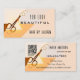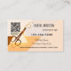 Business card featuring a whimsical geometrical design with a pair of scissors. On the back is a template for your QR code. The fonts are a fun and messy array of different sans serif styles, which you can change if you like. Beautiful for a hair salon or hair stylist.
