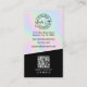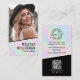 The front features your photo, company logo, name, and title or business name, all framed by a faux holographic accent along the bottom for a trendy, eye-catching finish. The back mirrors the look with a faux holographic strip at the top, tying the design together.