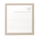 A professional lined notepad with a minimalist design in a beige and white colour palette. Custom monogram initial and name on a simple white background, framed by a beige border. Personalise using the fields provided or use the 'message' button to contact the designer for help.