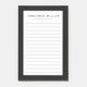 A professional lined notepad with a minimalist design in a black and white colour palette with light grey accents. Custom name and title, role or custom text presented on a simple white background, framed by a black border. Personalise using the fields provided or use the 'message' button to contact the designer for help.