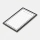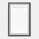 A professional lined notepad with a minimalist design in a black and white colour palette with light grey accents. Custom name and title, role or custom text presented on a simple white background, framed by a black border. Personalise using the fields provided or use the 'message' button to contact the designer for help.
