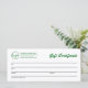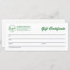 Simple and professional business gift certificate featuring a minimalist design with your logo at the top left along with your contact information in green over a white background. The title "Gift Certificate" and the message "A Gift For You" on the back are in a modern brush script font. The The fonts and colours may be changed to any you wish by clicking the "customise" button. This professional Gift Certificate is great for a golf course, bar, restaurant, or pub.