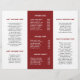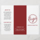 Professional and modern trifold brochure with a simple yet elegant design in burgundy and white. The front panel has your logo and business name. The back panel has your contact information and the inner fold panel has two headers and text boxes. Use the template to add information about your business on the outer panels and a price list / service menu in the middle panel. DESIGN TIP: You may change the text and background to any colour you wish by clicking the "customise" button.