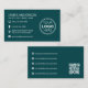 Create professional business cards to promote your brand. This simple, stylish design features sleek, modern typography with a minimalist aesthetic. The template can be personalized with your company logo, name, job title, telephone, cell phone number, address, email, website, and QR code. It includes space for four social media handles, with the option to add official icons. You can download these icons directly from social media platforms, and they're free to use in various formats. This way, you'll be sure to use the latest version of their icon and adhere to the brand's guidelines. This flexible design is completely editable, so you can tailor it to your business requirements. Business cards are a powerful marketing tool that help establish your brand identity, provide accurate contact details, and make a memorable first impression on prospective clients. Printed colors: dark teal green and white.