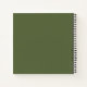 Modern notebook features a minimal design in a olive colour palette with black accents. Custom monogram initials presented in the lower right hand corner in stylish simple classic font.