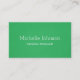Perfect for many professions, these business cards feature a solid background of medium green with a subtle grainy texture. Add in your name and information for a perfect card. Name and title are on front for a very clean, minimal look, and contact information go on the back in dark grey text. The back also has the same grainy green background, but screened back.