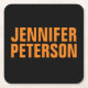 Professional minimalist modern bold orange black square paper coaster