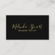 featuring name in gold modern calligraphy font style and details in gold modern sans serif font style on black background.